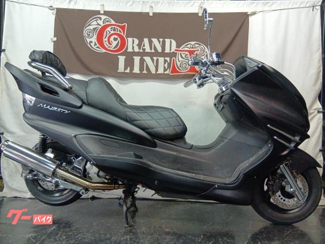 ヤマハ マジェスティC 2006年式 マットブラック メッキフィン付きエアロ 社外ステンレスマフラー メッキチューブ 極太タンデムバー 車両価格 33.8万円(税込10%)