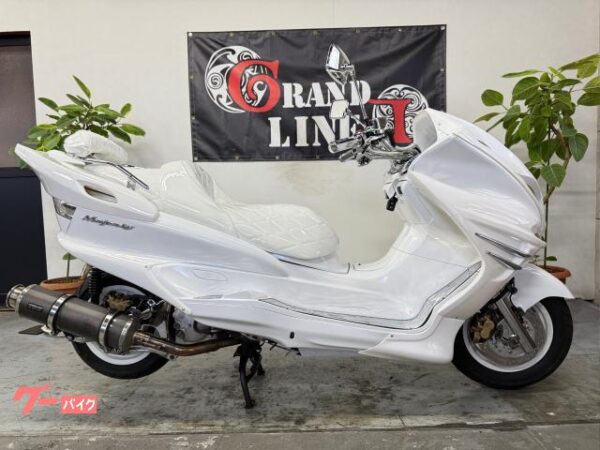 ヤマハ マジェスティC LED2スピーカー プロジェクターヘッドライト 前後タイヤ新品 社外マフラー LEDテール フルブラックカスタム 車両価格 37.8万円(税込10%)
